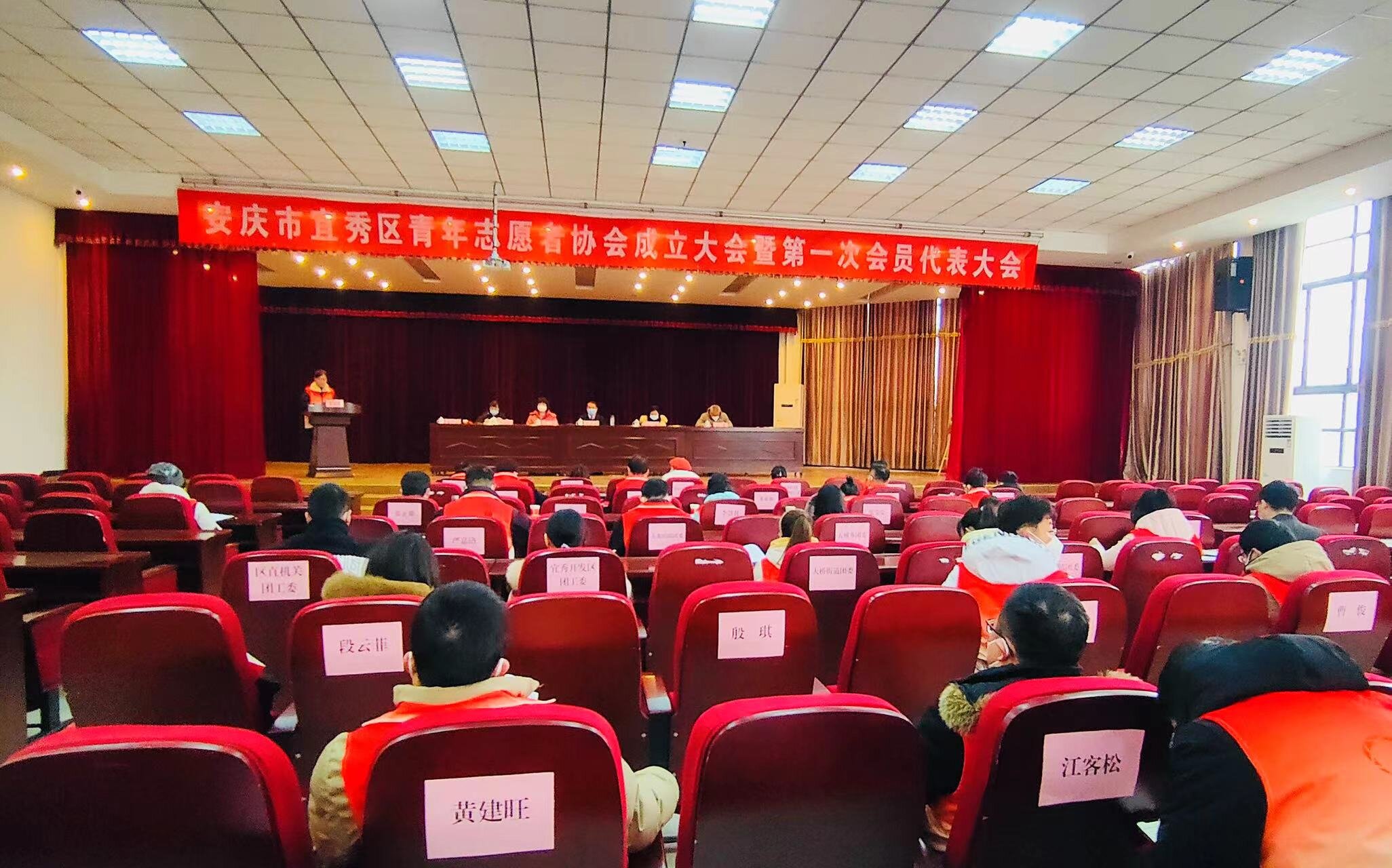 为深入学习宣传贯彻党的二十大精神,进一步弘扬“奉献、友爱、互助、进步”的志愿服务精神、加强对青年志愿者行动的组织领导,2023年1月2日上午,安庆市宜秀区青年志愿者协会成立大会暨第一次会员代表大会在芭茅巷社区胜利召开。区委副书记、政法委书记张吉全,团区委负责同志出席会议;区委宣传部,区民政局,安庆市志愿服务联合会负责同志应邀出席会议;约50名协会会员代表参加会议。