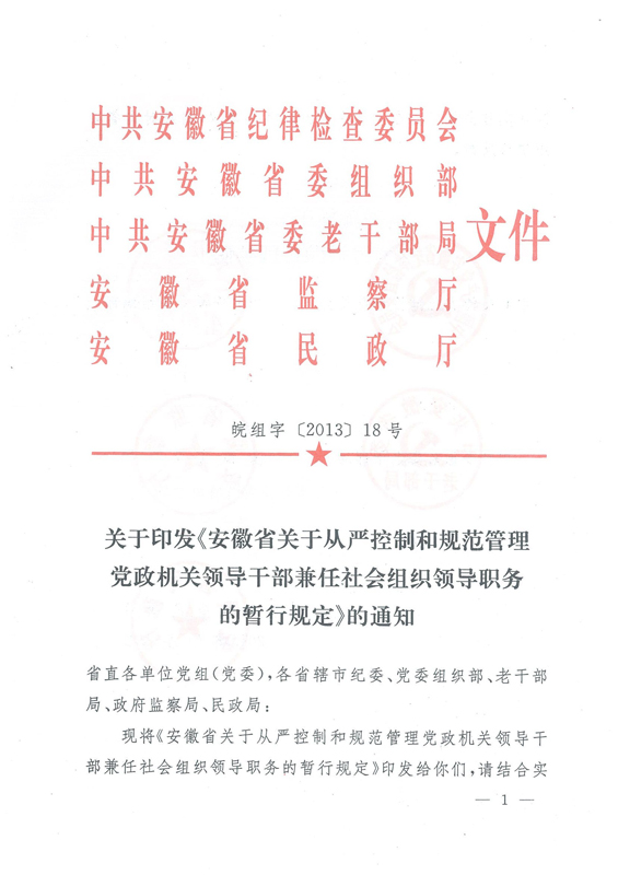 安徽省关于从严控制和规范管理党政机关领导干部兼任社会组织领导职务的暂行规定