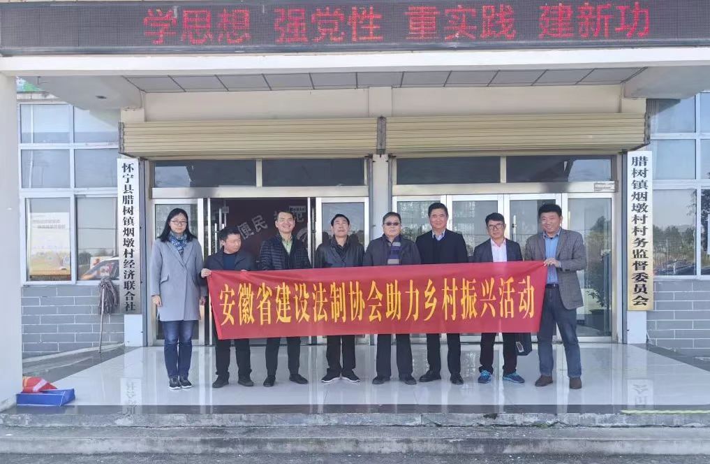 为贯彻落实《安徽省民政厅关于印发<安徽省社会组织“百社进百村”助力乡村振兴行动方案>的通知》精神,近日,省建设法制协会会长李晓纲携部分会员单位负责人一行赴安庆市怀宁县腊树镇烟墩村开展助力乡村振兴活动。