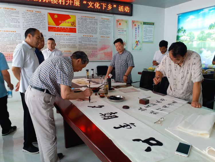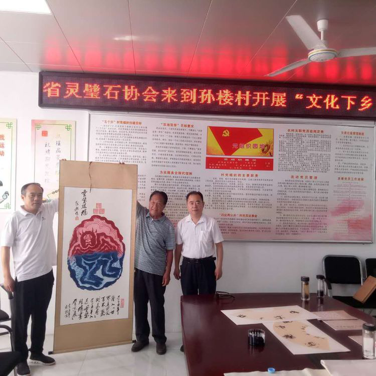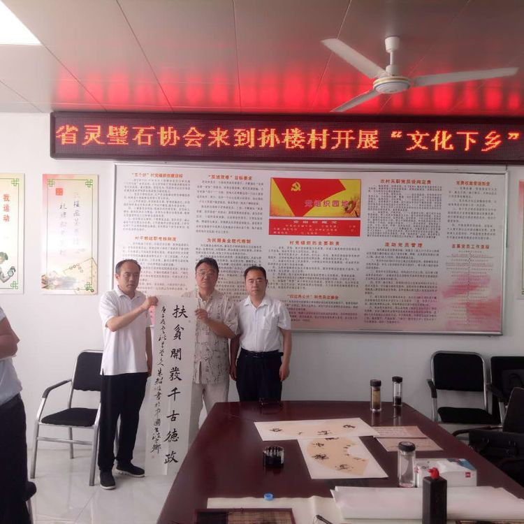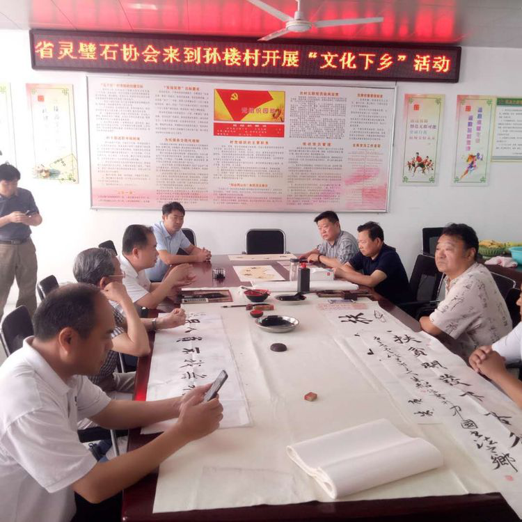 文化下乡,翰墨飘香。2020年7月7日, 安徽省灵璧石协会邀请宿州市著名书法家郭大华、朱绍检、郭峰、张朝中、张照、张超等人赴结对帮扶的埇桥区栏杆镇孙楼村,开展文化扶贫下乡活动。