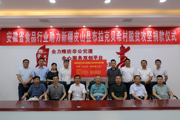 新疆自治区驻安徽省服务管理工作组何建忠副书记代表新疆皮山县和布拉克贝希村人民,对安徽省食品行业协会和各位企业家表达由衷感谢,本次帮扶捐款活动折射了协会党建工作卓有成效。他指出在以习近平总书记为核心的党中央坚强领导下,新疆各项事业得到长足发展。欢迎协会组织龙头食品企业到新疆考察,开展项目合作。