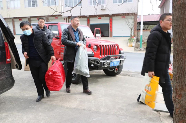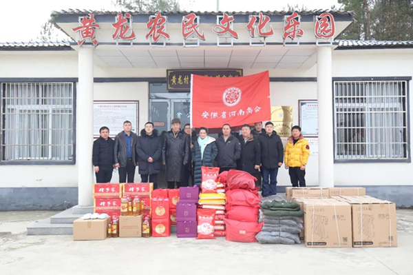 2021年1月16日,在新春佳节来临前夕,安徽省河南商会赴结对子对象——金寨县黄龙村进行爱心慰问。值班执行会长张自香,值班常务副会长、蚌埠河南商会会长牛瀚筠,值班常务副会长孙晓梅,常务副会长唐斌,值班副会长吴帅领,副会长李志远,会长助理袁磊、副秘书长李长奎、蚌埠河南商会党支部书记姜典国、常务副会长单位合肥广融商贸有限责任公司总经理马柯等参加。